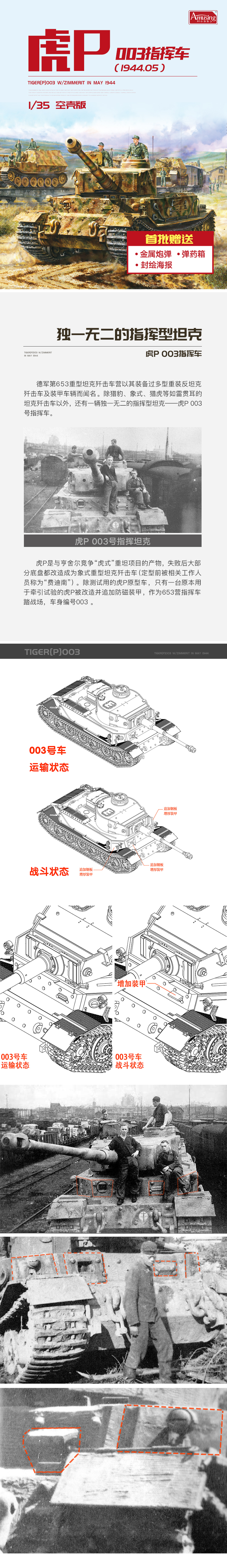 AMUSING Hobby 35A059 1/35 WWII German Tiger P003 Command Vehicle W/Zimmerit 1944