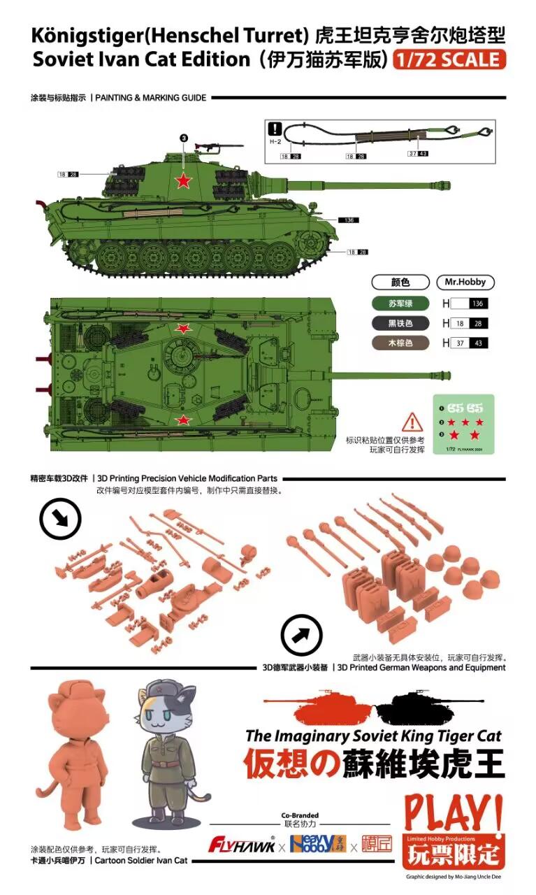 FLYHAWK FH3019F 1/72 Scale Tiger King Tank Henschel Turret Type Soviet lvan Cat