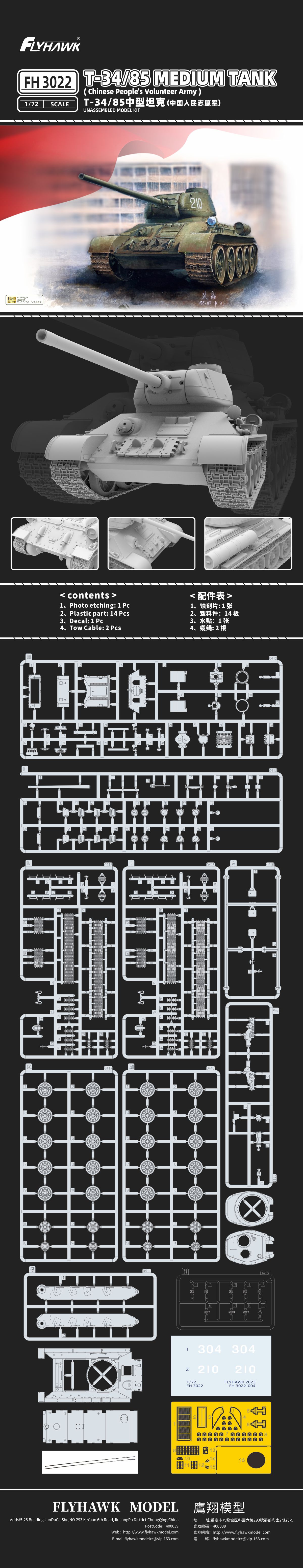 Flyhawk FH3022 1/72 T34/85 MEDIUM TANK (Chinese People's Volunteers)